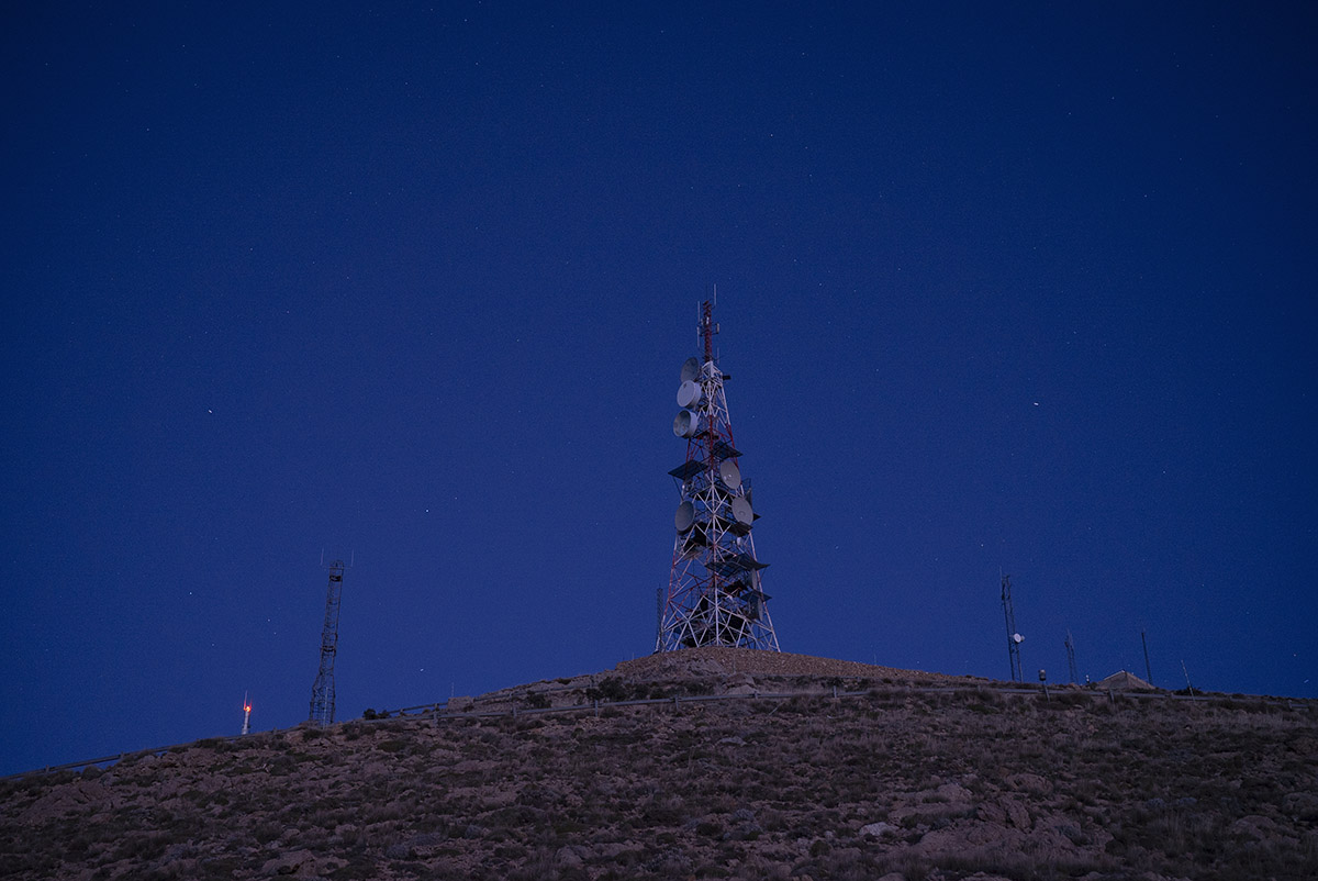 dem Gipfel steht eine große Funkstation, weswegen eine Asphaltstraße in