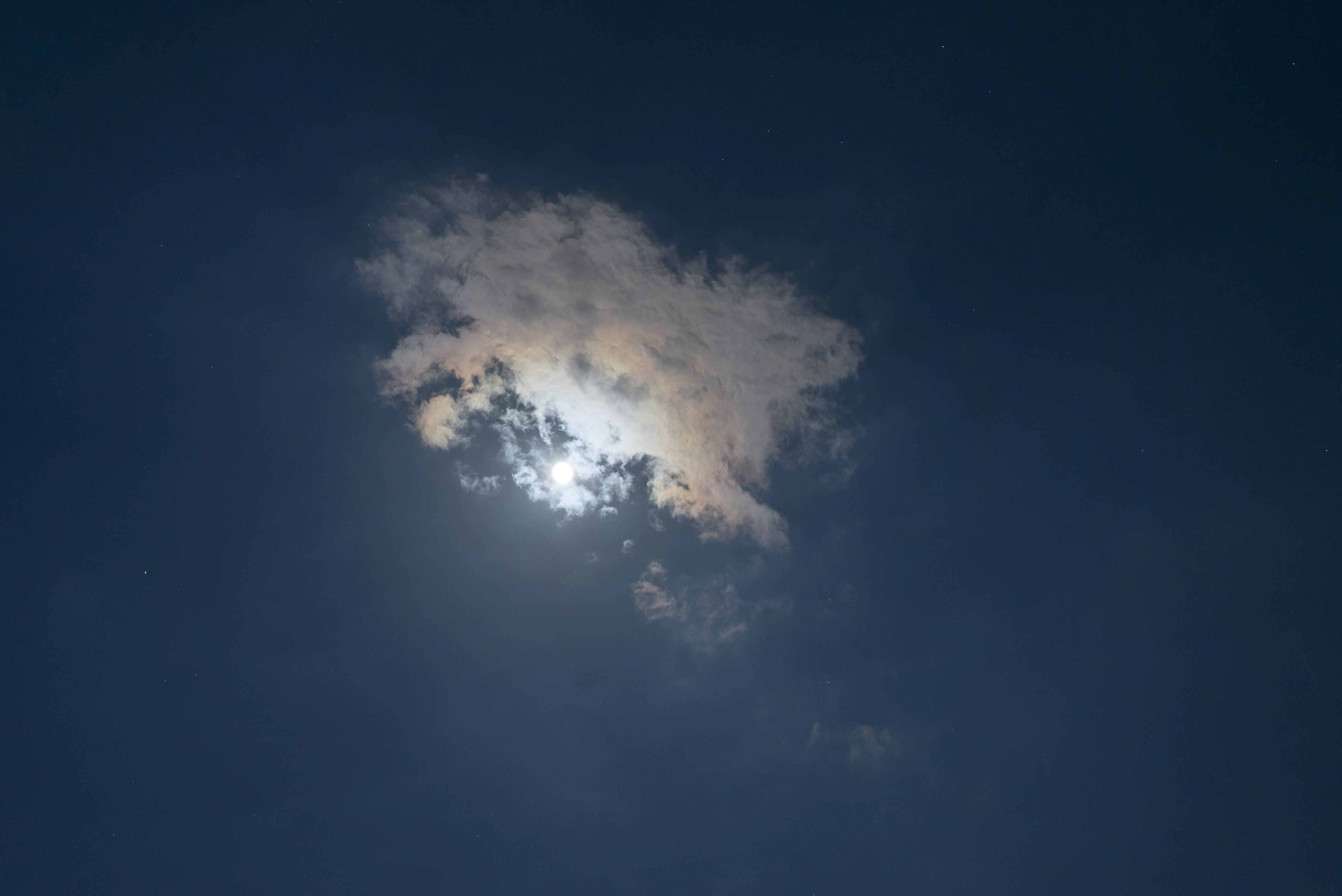 Die feiner werdenden Wolkenschleier führten auch zu dieser schönen Mondaureole.