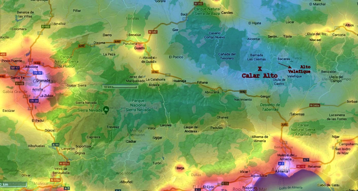 Lichtverschmutzungskarte zeigt die Qualitäten des Ortes Bacares, der