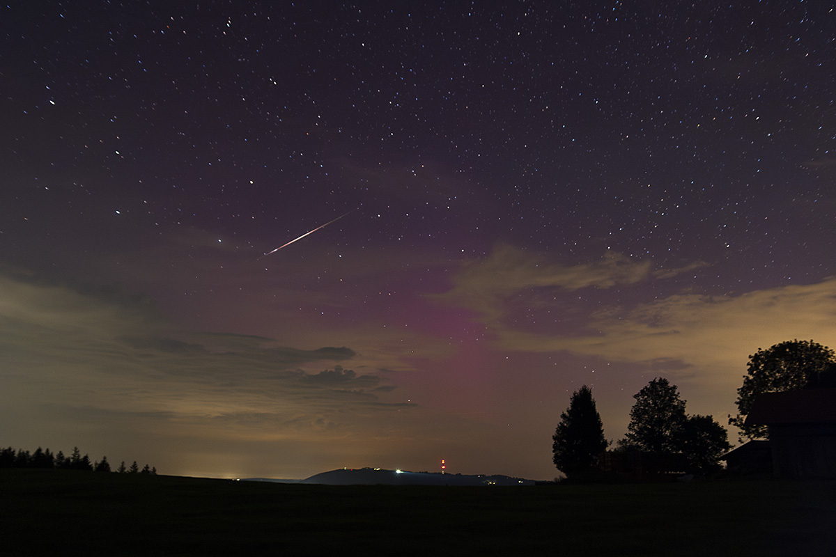 Perseid über dem Hohenpeißenberg mit Polarlichtern