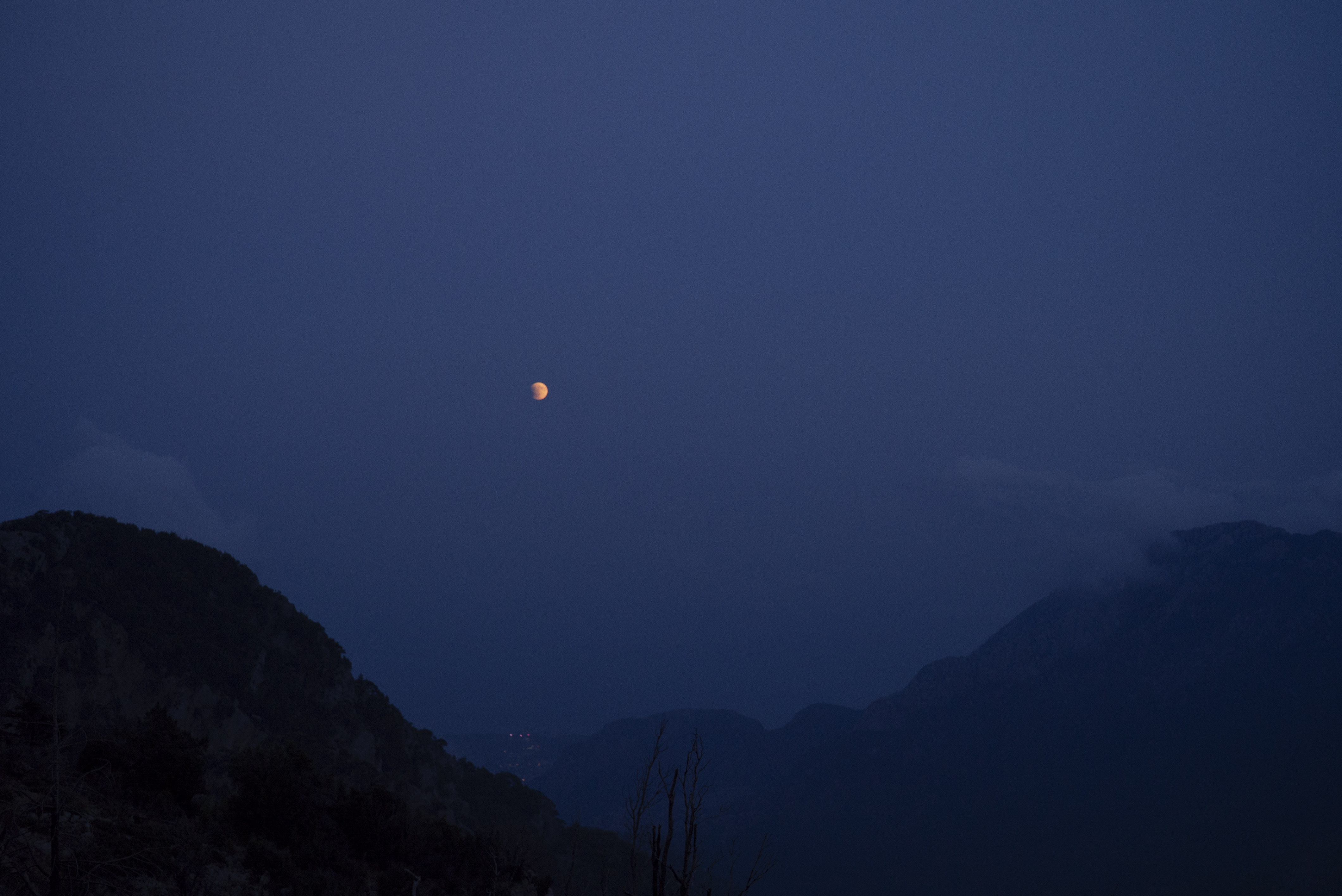 nach Mondaufgang über dem Mittelmeer. Der Horizont ist nicht zu sehen -