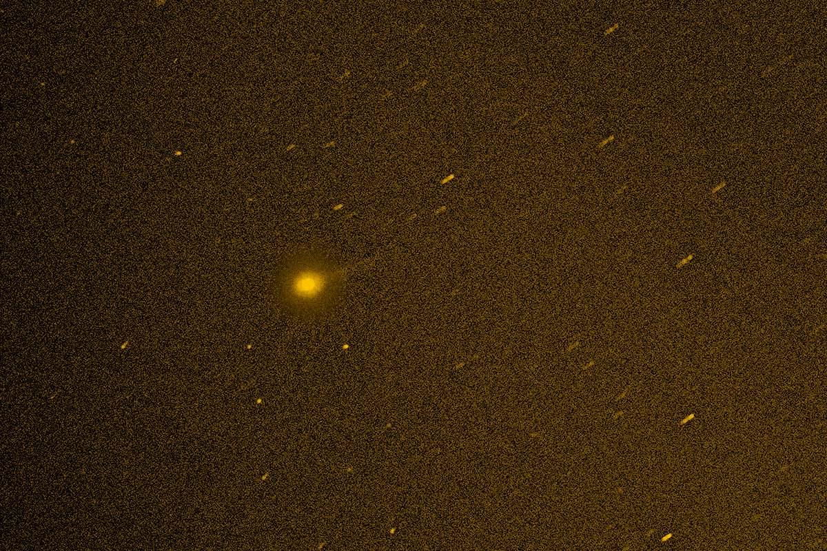 werden. Für das Bild wurden 29 Aufnahmen überlagert. Der Schweif erscheint nur noch etwa 15' lang.